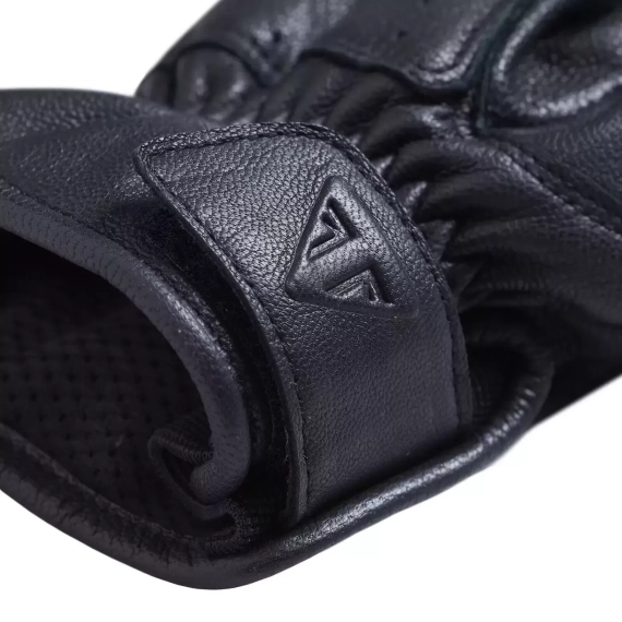 Lærhansker med mykt nettingfor, for-formede fingre og stretchpaneler.