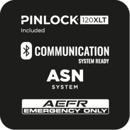 Visir: ekstra bredt synsfelt, ATVR (Airoh Tool-less Visor Removal), A3S (Airoh Automatic Antifog System), låsesystem, ripe- og UV-bestandig
