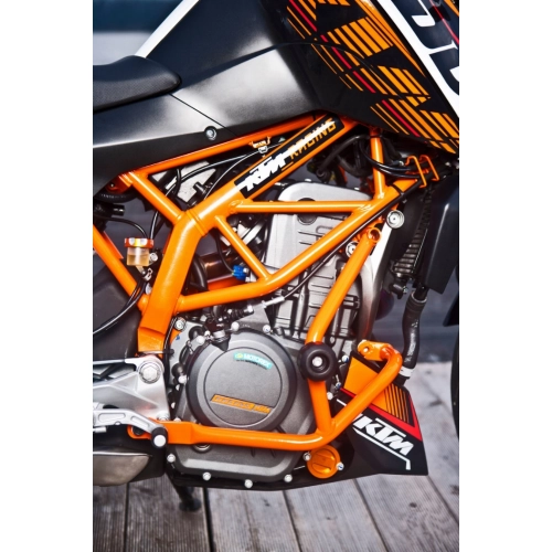 Plastic-coated tubular steel bars attached securely to the frame protect all the important parts on your Duke.