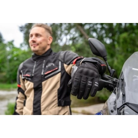 Myke, komfortable og slitesterke vanntette tekstilhansker med DRYWAY+ membran, knokebeskyttelse på nivå 1, varmeisolasjon og NUDUD berøringsskjermteknologi. Forsterket håndflate og dobbel borrelåsjustering.