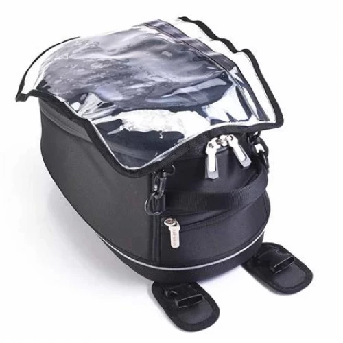 The Triumph Nylon Tank Bag features a non-slip base and felt-backed webbing to protect your fuel tank. It is lightweight in design and offers 9.3 liters of storage capacity. Comes complete with fitting kit. Rain Cover sold separately (A9510228). This item fits Bonneville T120, Bonneville T120 Black, and Street Twin models.