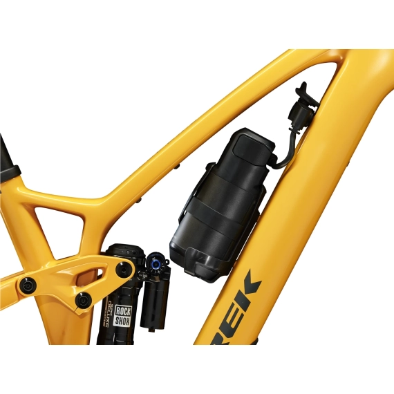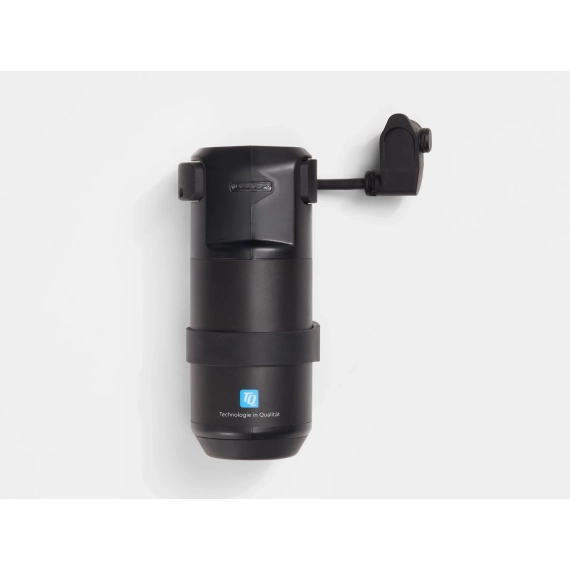 Den passer perfekt i et Bontrager flaskebur med en sideåpning i den indre trekanten der den sitter nær ladeporten, godt festet med en stropp (Range Extender-kabel og monteringsstropp selges separat).