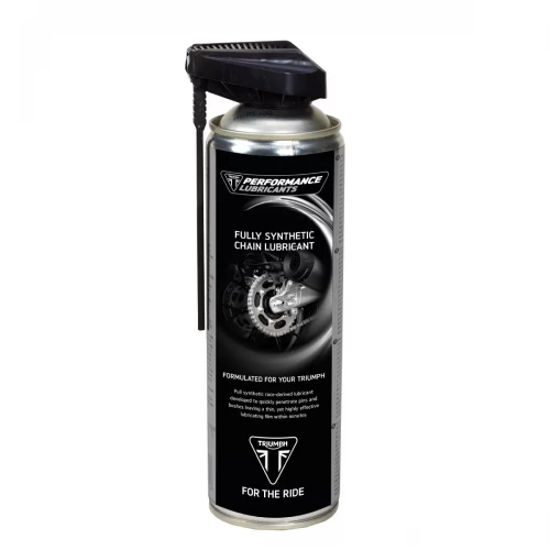 Triumph Helsynth Chain Lube 500ml Helsyntetisk kjedesmøremiddel utviklet for raskt å trenge gjennom og etterlate en tynn, men svært effektiv smørefilm.